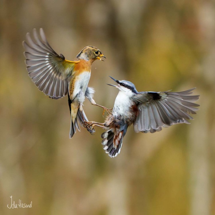 Kamp mellom bjørkefink og spettmeis